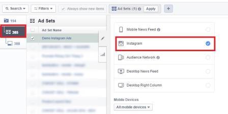 Sau khi tạo xong bạn nhấn vào Ads set đó. Kéo xuống phần Placement để điều chỉnh vị trí quảng cáo có thể thấy 1 lựa chọn là Instagram Ads xuất hiện. Bạn có thể loại bỏ những loại quảng cáo khác.