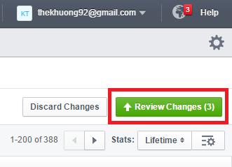 - Sau đó chỉnh sửa xong nhớ nhấn Review Change và Continue để lưu lại là được.