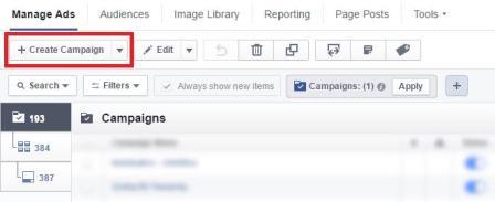 Chọn Create Campain để bắt đầu tạo quảng cáo