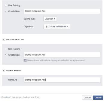 Việc tiếp theo bạn cần làm để tạo quảng cáo và bắt đầu chiến dịch quảng cáo trên Instagram của mình đó là: